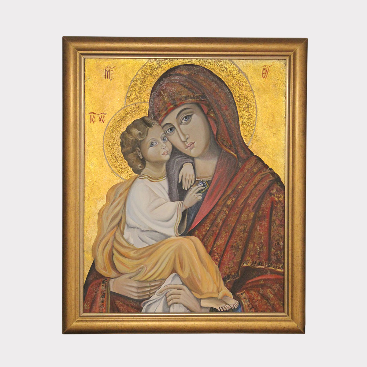 Ručno slikana ikona Presvete Bogorodice u autentičnom ruskom akademskom stilu. Tehnika ulje na platnu pruža neprevaziđenu dubinu boja, mekoću senki i bezvremensku estetiku. Simbol neiscrpne majčinske ljubavi i zaštite.