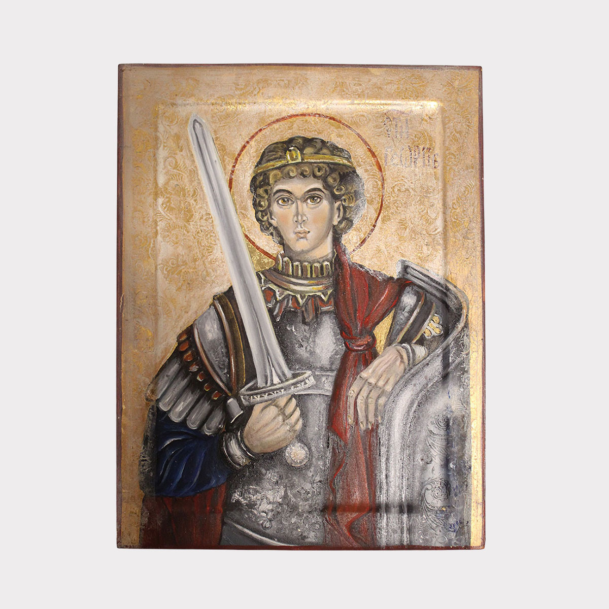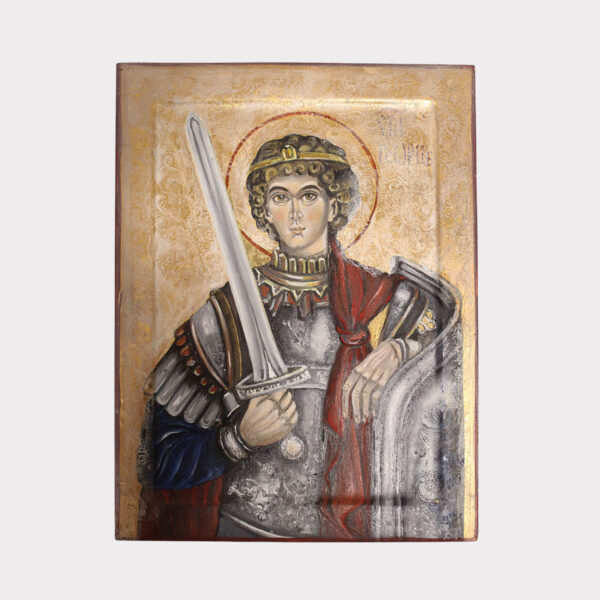 Ručno rađena ikona Svetog Đorđa Pobedonosca (26×20 cm) na lipovom drvetu. Ukrašena 22K zlatom i oslikana tradicionalnim uljanim bojama. Savršen duhovni poklon za Đurđevdan i Đurđic.